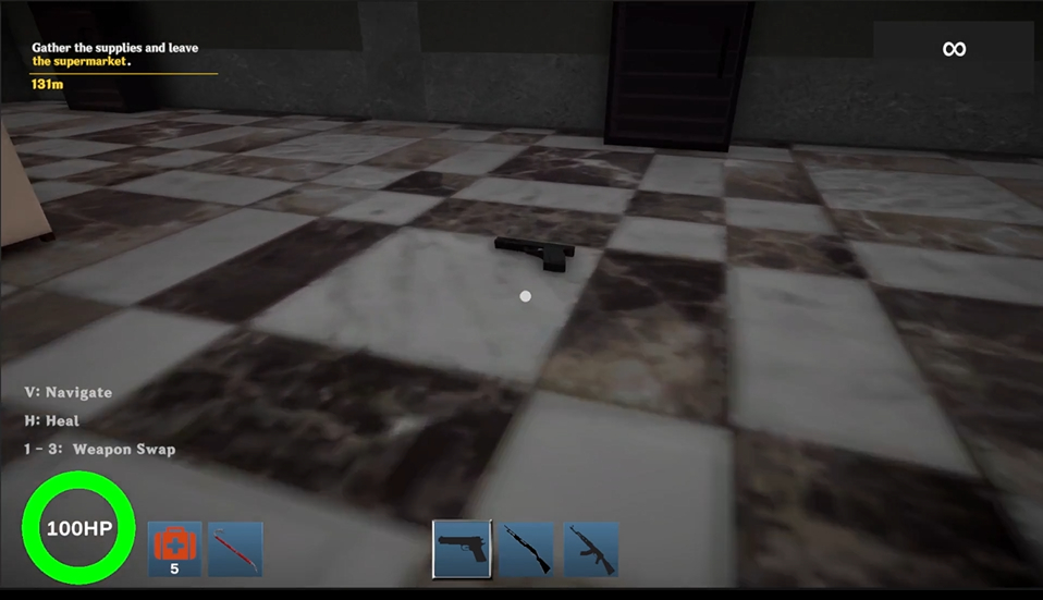 As a 3D Modeler, I crafted interactive and environmental assets including a Pistol, Crowbar, Shotgun, AK-47, Lamppost, Dustbin, Buildings. Additionally, in my role as a Game Designer, i created the game mechanics within Unity, such as Gun shooting mechanics.